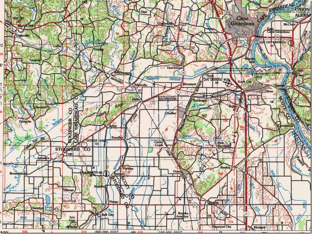 11. Poplar Bluff, MO-AR, 1:250,000 quad, 1957, USGS. Click here for a larger view.