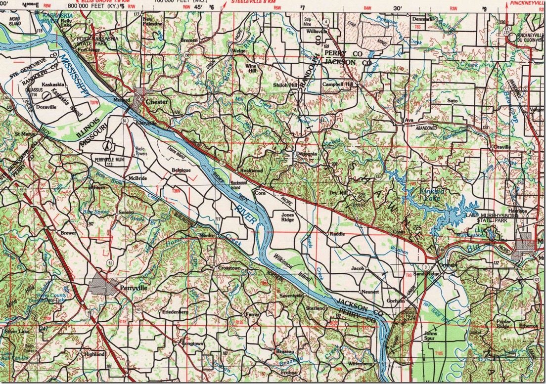 20. Bell City to Thebes IL, Paducah KY-IL-MO-IN, 1:250,000 quad, 1987, USGS. Click here for a larger image.