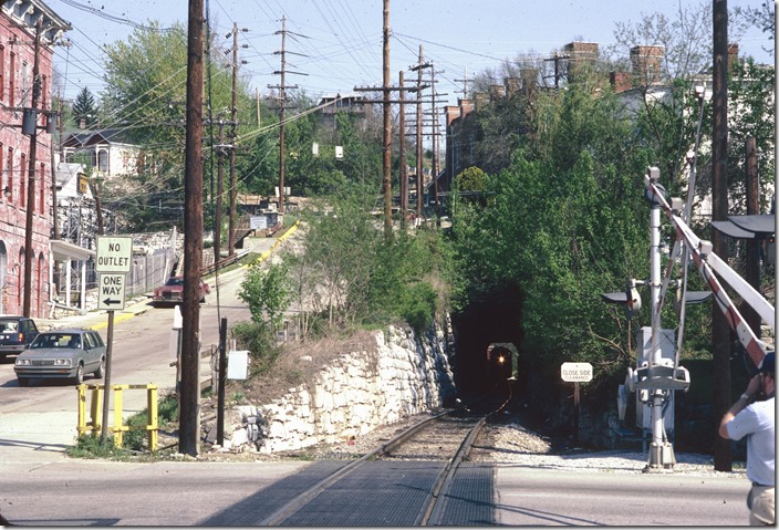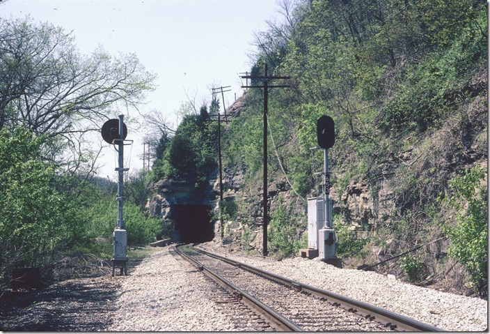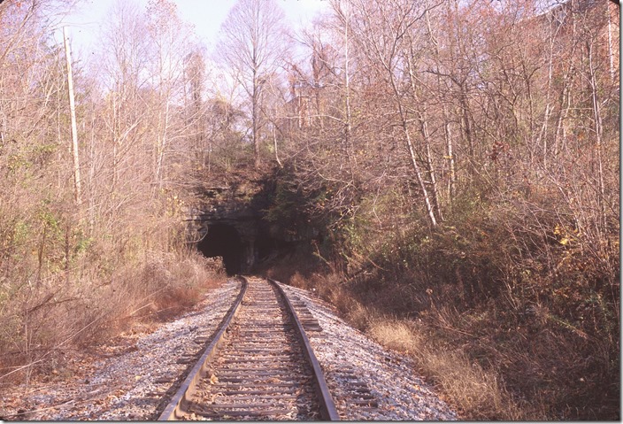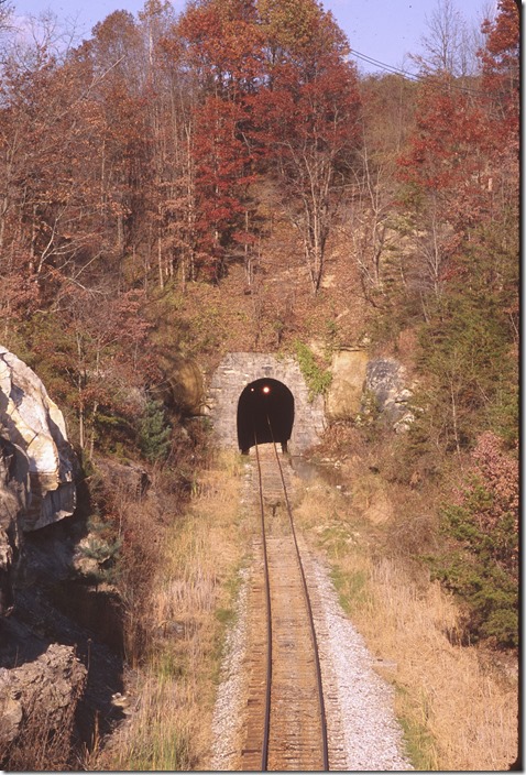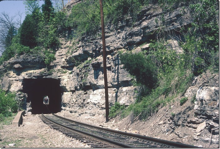 11. East portal of L&N’s Frankfort Tunnel. C&O used the L&N from Lexington to Louisville. R. J. Corman Railroad operates this track now. 04-25-1986.
