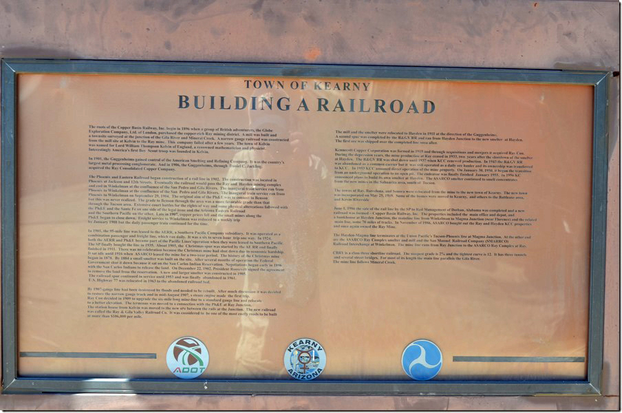 4. Building A Railroad plaque. Click here for a larger map image. Kearny AZ.