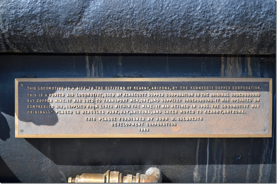 2. KCC compressed air loco plate Kearny AZ. Click here for a larger image.