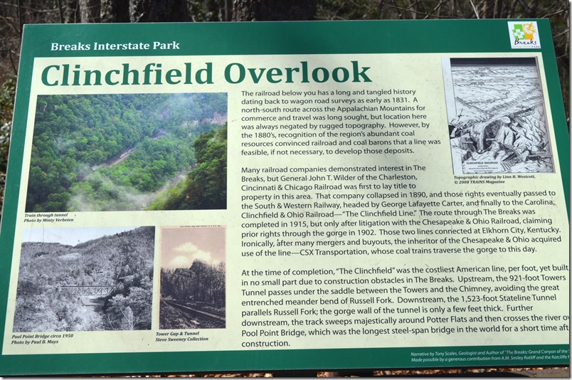14. CSX Breaks Interstate Park. Clinchfield Overlook Plaque. Click here for a larger image.