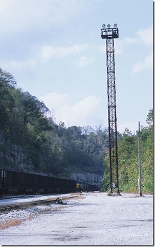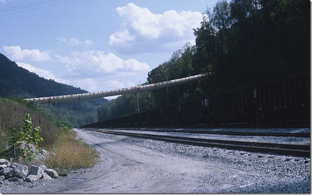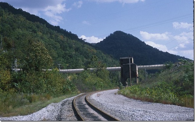 4. This view at the west end of Elk Run Jct. yard shows the old coal dock where the engine terminal used to be located. Massey Coal (now Alpha Natural Resources) built a conveyor across the valley and the yard to utilize their nearby Elk Run Coal preparation plant.
