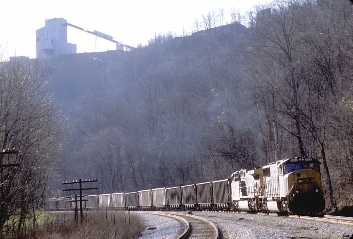 5. There is a siding above the load-out, but once out from under there, the train creeps down Track 1.