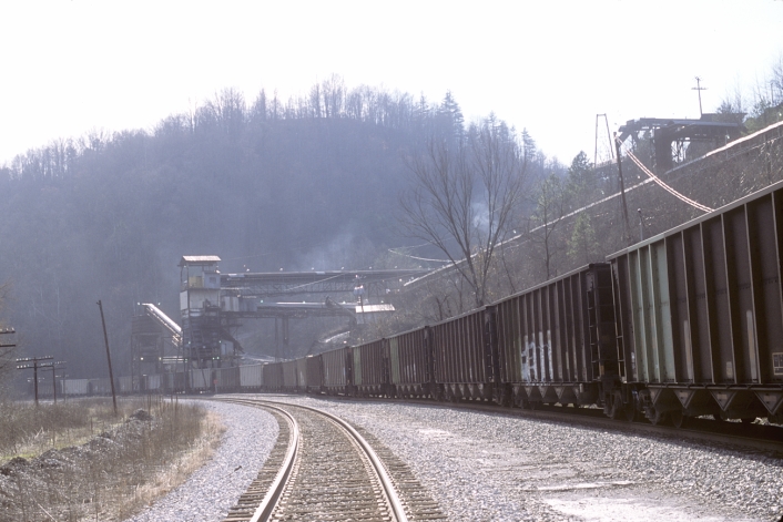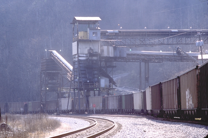 4. I decide to walk on up the track for a look at the tipple. At one time there was a center siding at Hoyt. I figured that L&N had converted the siding to a main track and configured the main as the mine siding. Not so. There is a siding above the load-out, but once out from under there, the train creeps down Track 1.