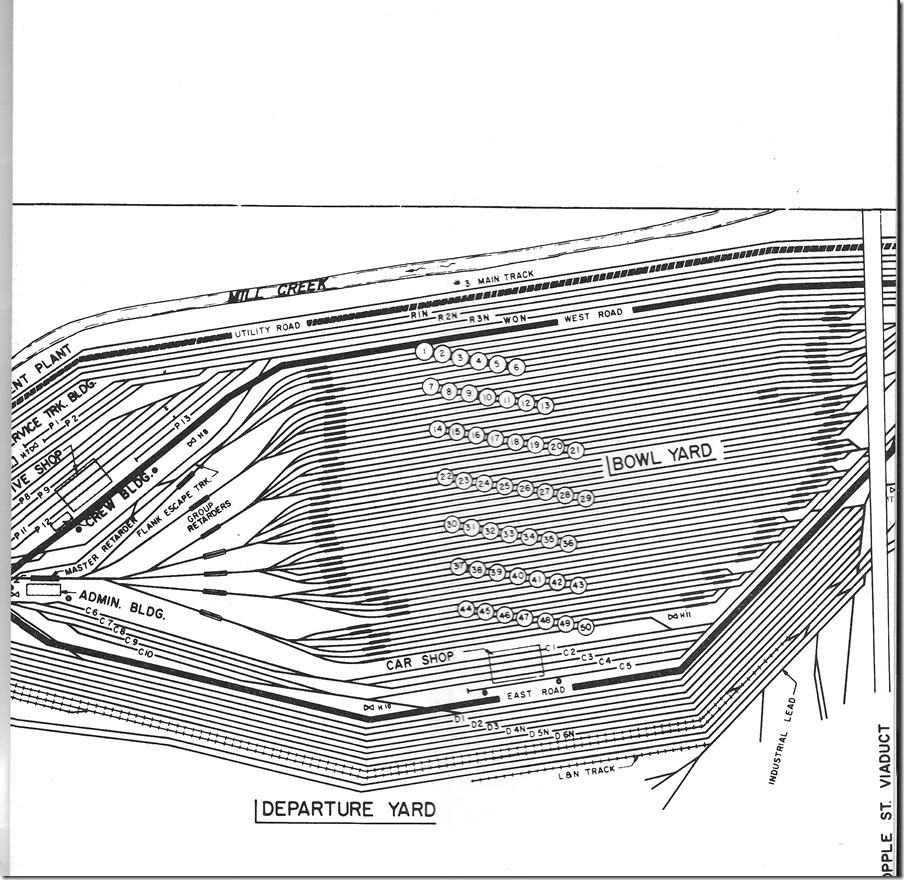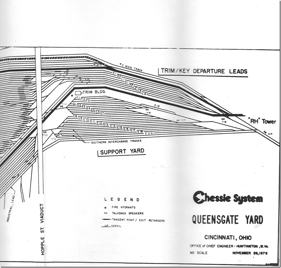 3. This map was published in the Queensgate Yard manual in 1979. Undoubtedly some if it has changed. I think CSX and NS now share a third main track. Queensgate Yard Map 1. Click here for a larger image.