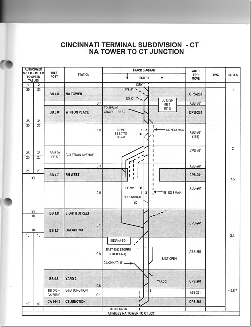 5. This is from the 2011 Louisville Div. employee timetable. Cincinatti Terminal SD NA CT Jct. Click here for a larger image.