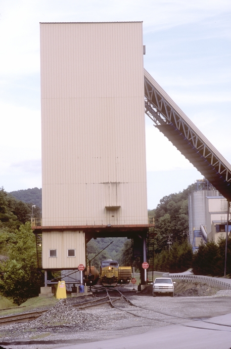 9. Bates Branch is now owned by International Coal Group - Knott County. There is no mine directly feeding into the plant. All raw coal is trucked in. You can see the wye in the background. The train shoved in from the left, but will load on the leg to the right.