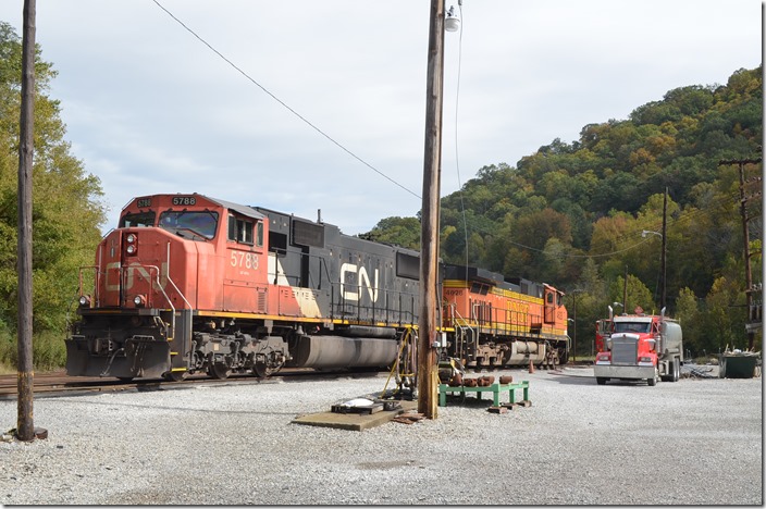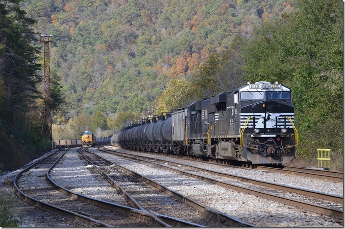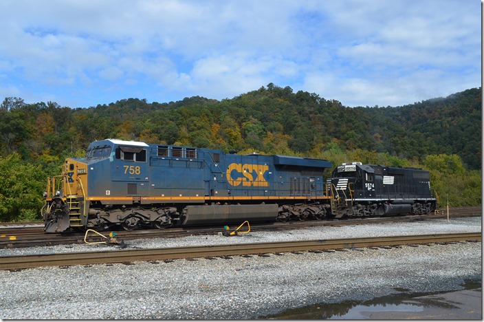25. CSX 806 pulls in on No. 2 yard track with an eastbound. NS 8126 CSX 806. Shelby.