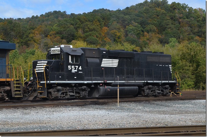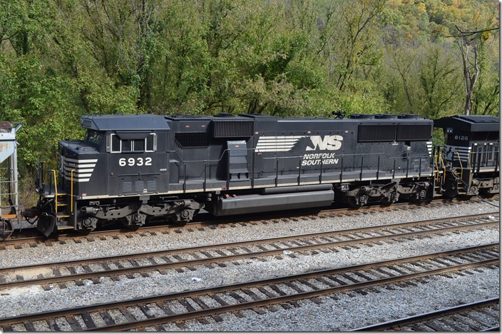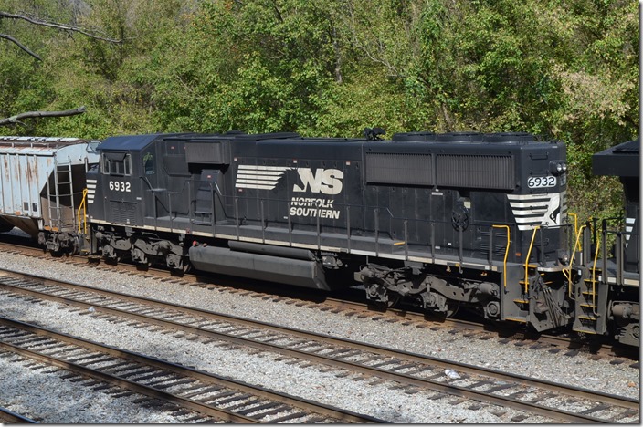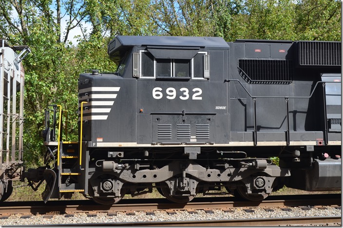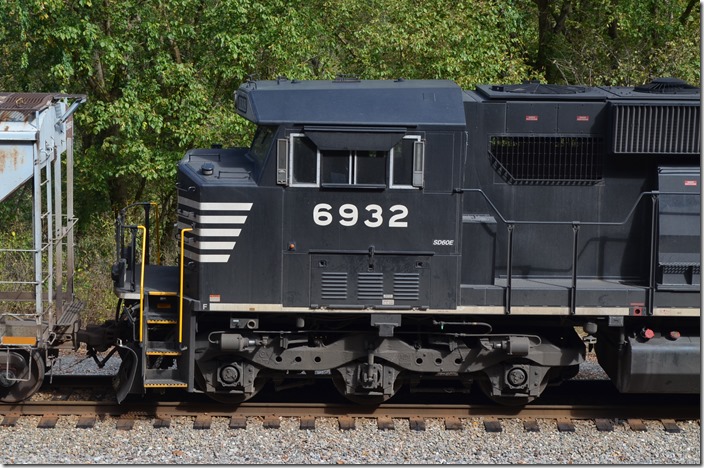 22. An interesting brow on this rebuilt SD60. NS designed cab and wide nose. 4,000 HP. NS SD60E 6932. Shelby.