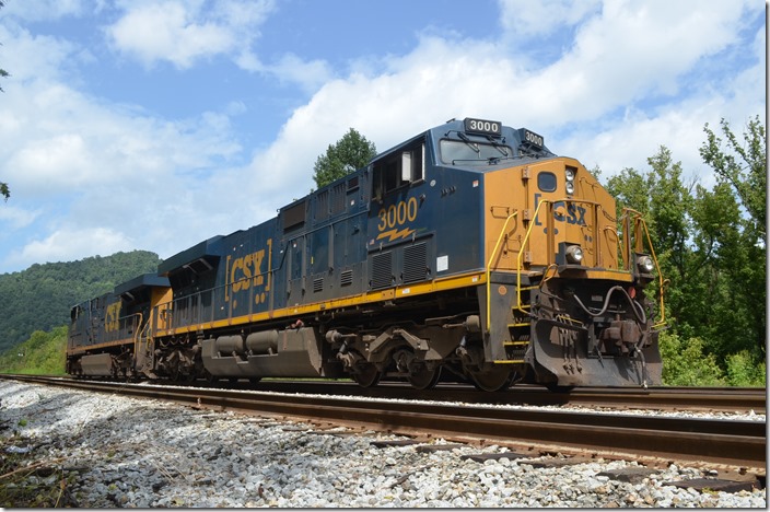 9. CSX AC44AH 3000. East end of Shelby. CSX ES44AC 3000. Shelby.