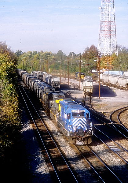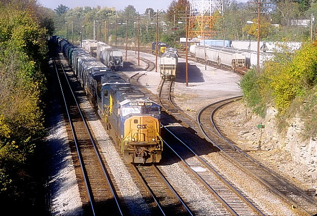 2. CEFX 3122-CSX 508-152 on a southbound grain train. The track on the right is the south leg of the wye leading to the EK Subdivision.