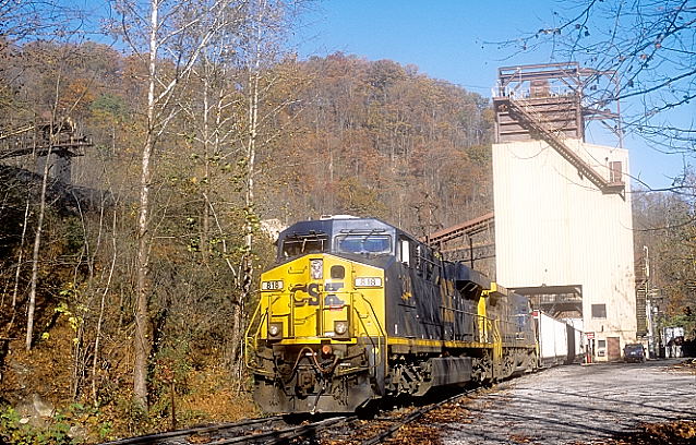 6. I peeled off KY 80 at Hiner to check out the Sigmon mine of Frasure Creek Mining. CSX 818-111 were ready to start loading KUCX (Kentucky Utilities) empties, but there was no crew on board.