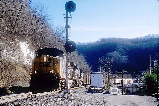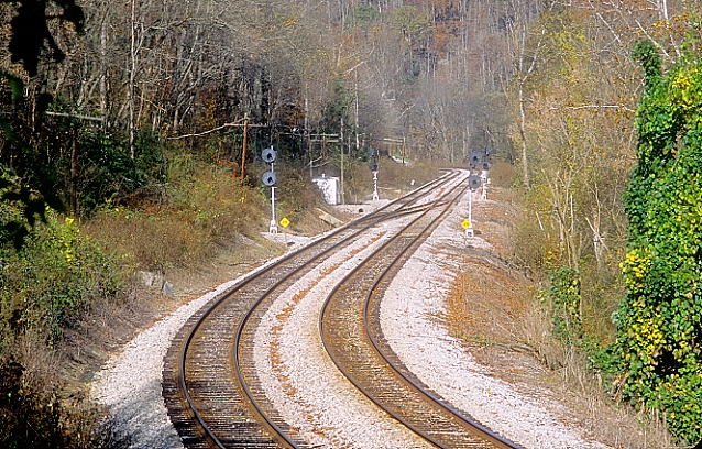 7. I went down-river to my favorite spot at Perrett with hopes of getting a southbound to photograph passing the crossovers at Krypton. Perrett is the north end of a long stretch of double track that extends south almost to Hazard. There are CTC signals there, but they are approach lit. I hung around until mid-afternoon. Nothing approached and they never lit! Here's the location I wanted to get at Krypton. Nothing else was happening around Hazard, so I headed home.