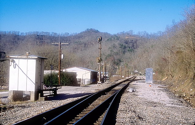 8. This view looks north at Jeff. The Carr Fork Br. comes in from the lower right. In the background begins the siding for Buckeye coal loadout which is a wye.