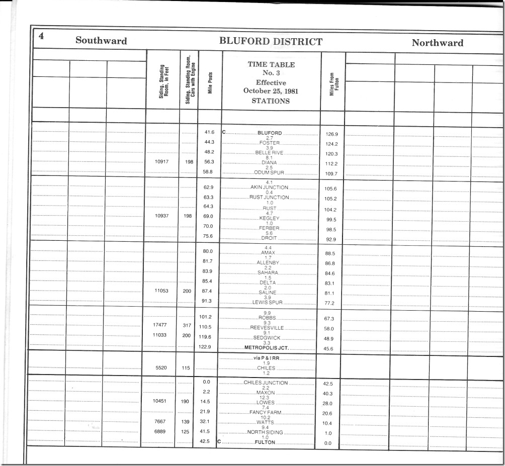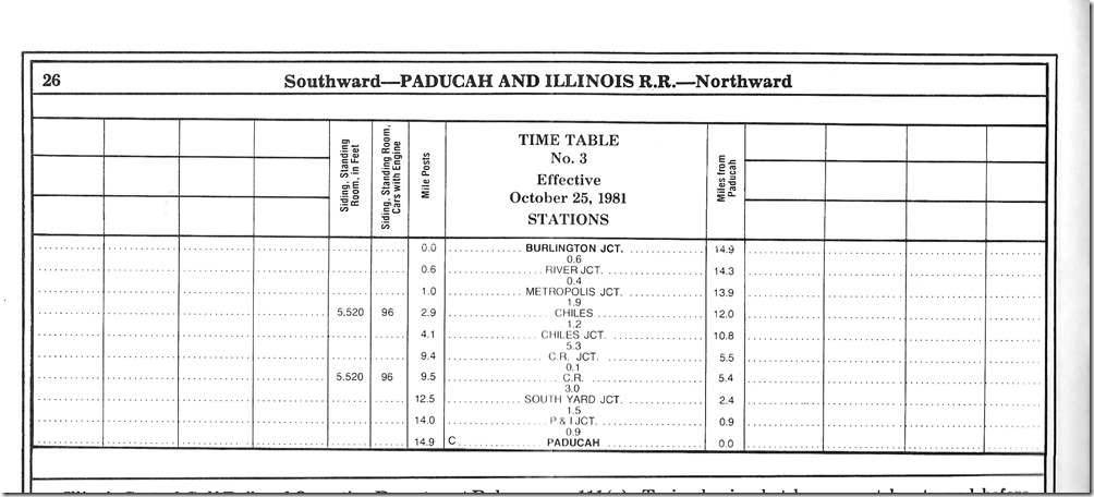 17. Paducah & Illinois Railroad Timetable No 3. 25 Oct 1981. Click here for a larger image.
