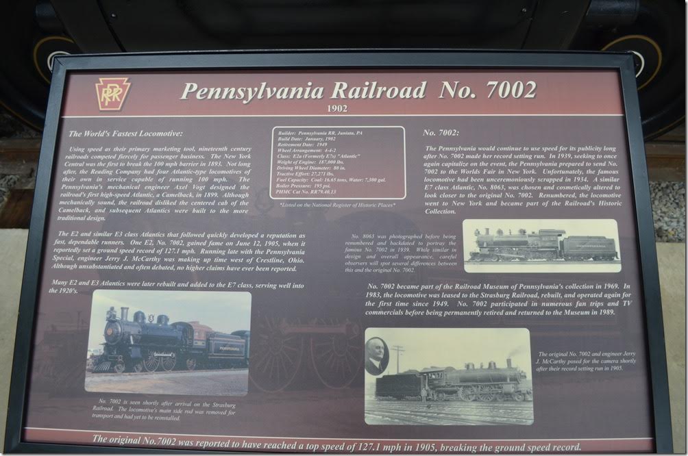 4. PRR 4-4-2 E7s 7002. Built Juniata Shops 1902 for passenger service. Built as 8063, but reclassified as E2 7002 in 1948 to represent world’s record speed holder. The original 7002 has been scrapped prior to that date.