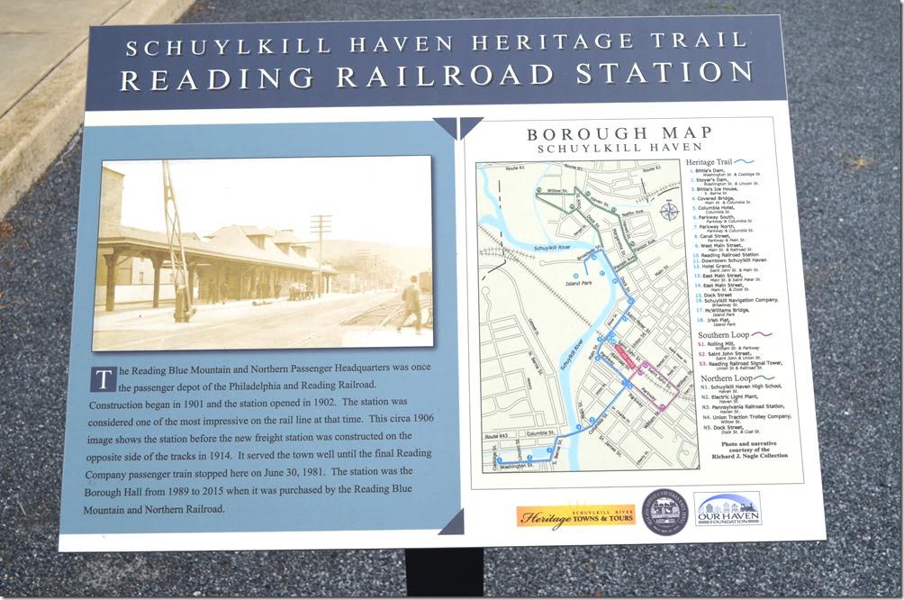 4. The Schuylkill Haven depot is now the headquarters of Reading & Northern / Reading, Blue Mountain & Northern’s passenger operations. The nearest track has been removed from Reading and Conrail days. Schuylkill Haven Heritage Trail.