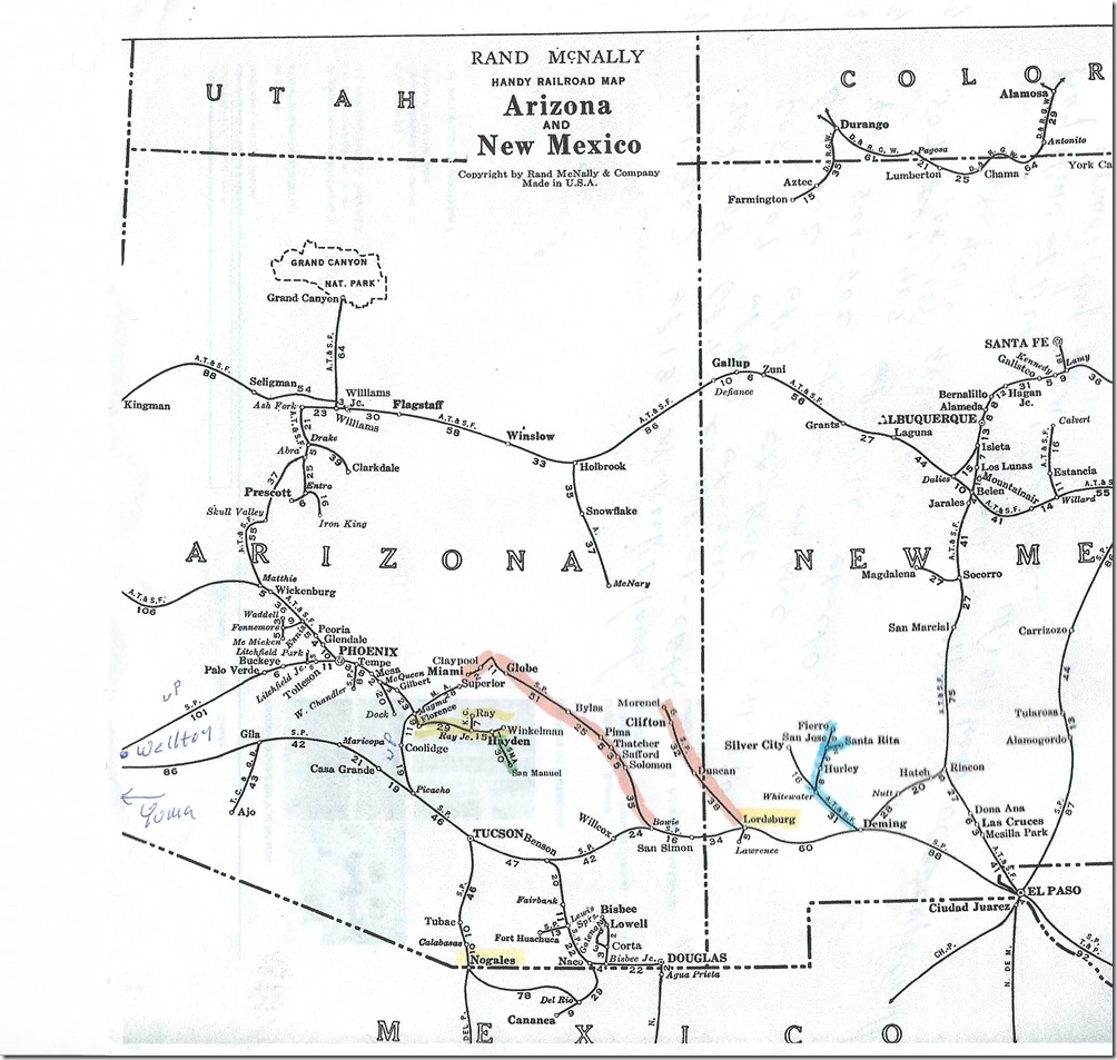12. Main line of the AT&SF Deming Dist. from Whitewater to Silver City was abandoned years ago. Rand McNally railroad map. Click here to view a larger map image.