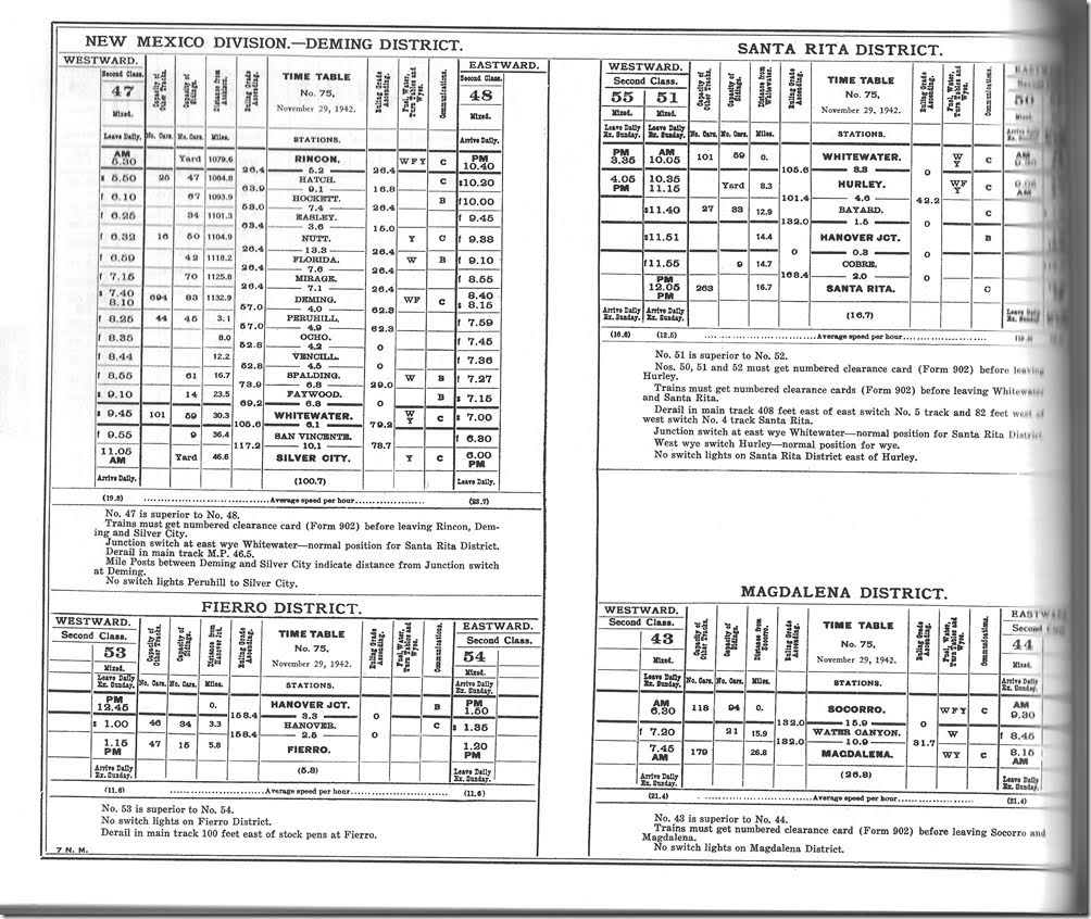 13. I don’t know the type of steam locos AT&SF used on this line. It had to be something powerful because of the very steep grade on the Santa Rita and Fierro branches. AT&SF Deming Dist 1942. Click here to view larger image.