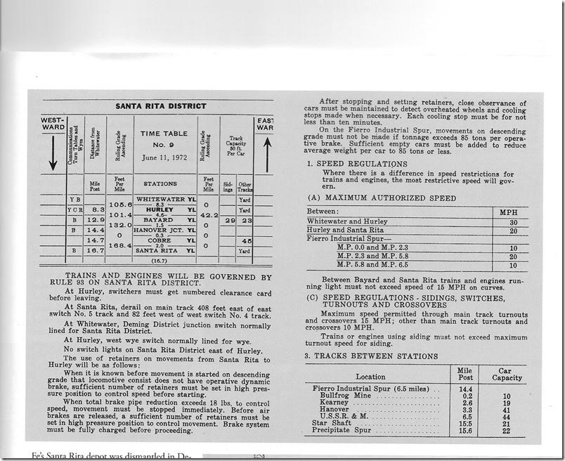 15. This is a segment of the 1972 employee timetable also came from the article. Santa Rita District employee timetable. Click here to view a larger image.