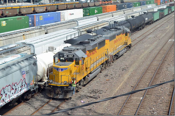 32. UP 1157 is an ex-SSW (Cotton Belt) GP60. UP 1475 GP40-2. St. Louis MO.