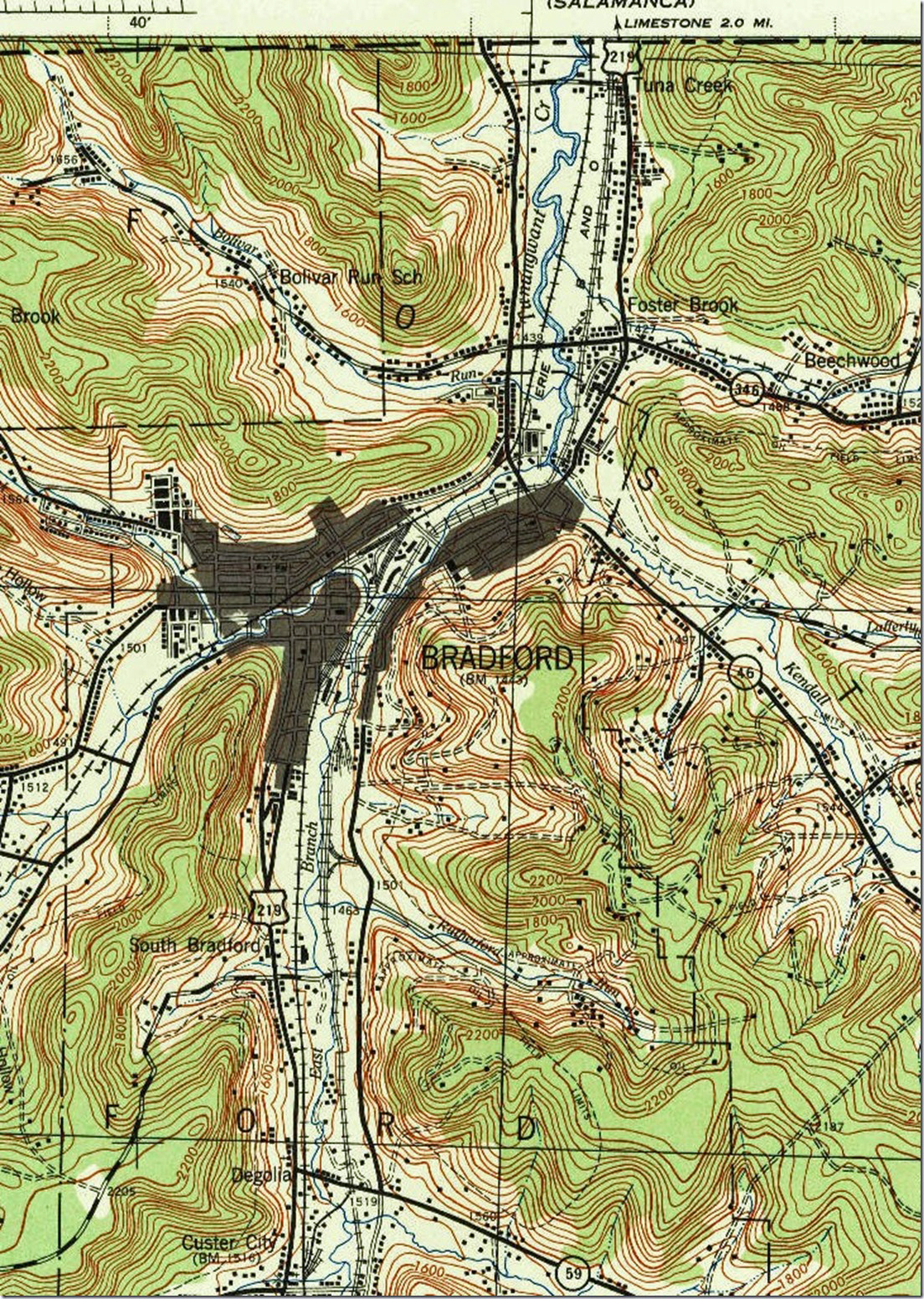 18. Bradford, PA-NY, 1:62,500 quad, 1944, USGS. Click here for a larger image.