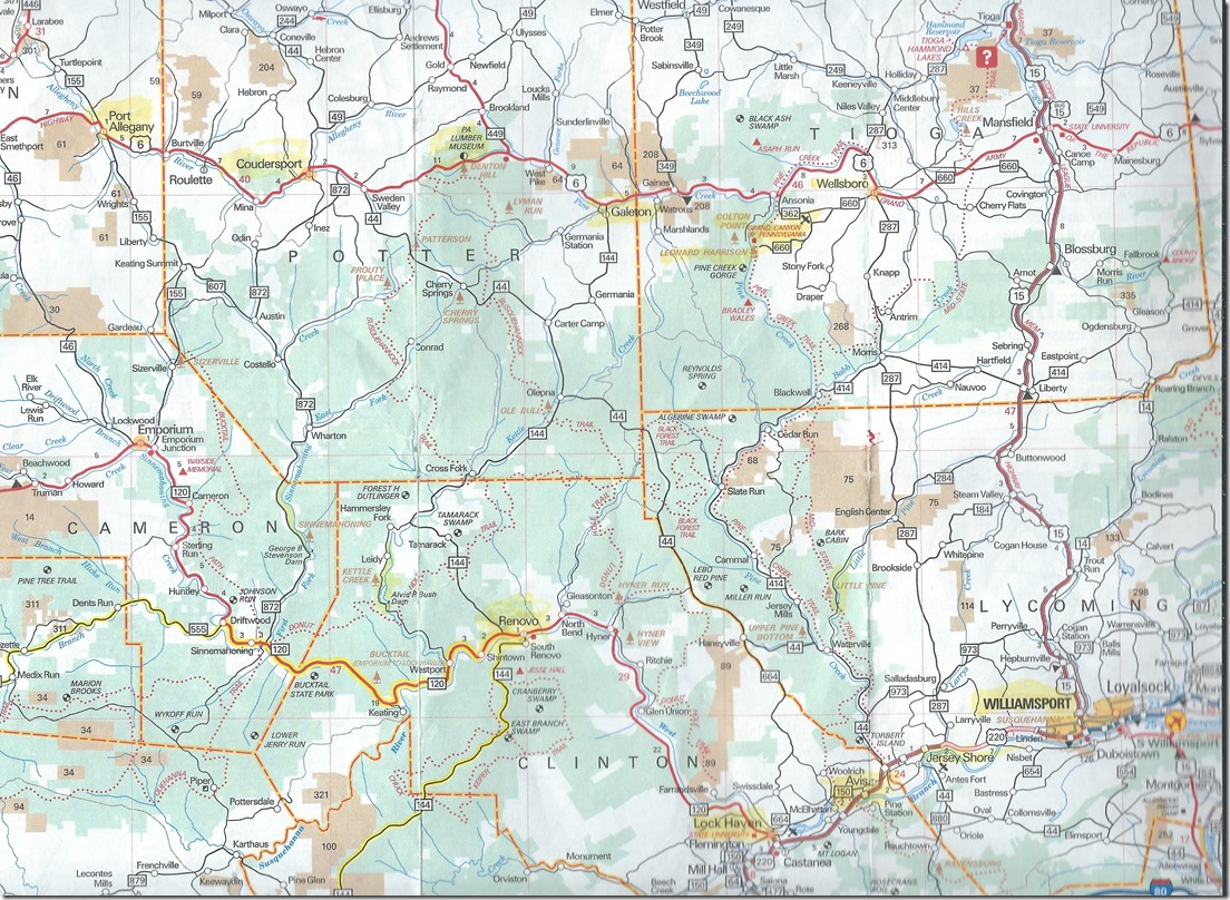 1. Upon leaving Galeton on Wednesday, 06-23-2021, we headed south on PA 144 to Renovo. This was a long curvy road. PA road map. Port Allegheny. Williamsport. Click here for a larger image.