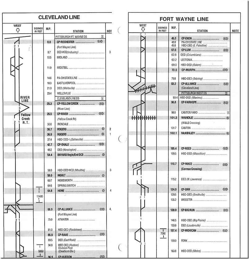 29. NS Pittsburgh Div. employee timetable #1, 06-01-1999. NS Cleveland Fort Wayne Line. Click here for a larger image.