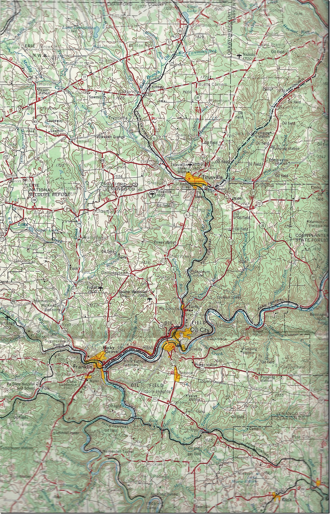 15. USGS Warren 1:250,000 scale map circa Penn Central era in 1967. USGS Warren Quad Oil City Titusville. Click here for a larger image. (6)