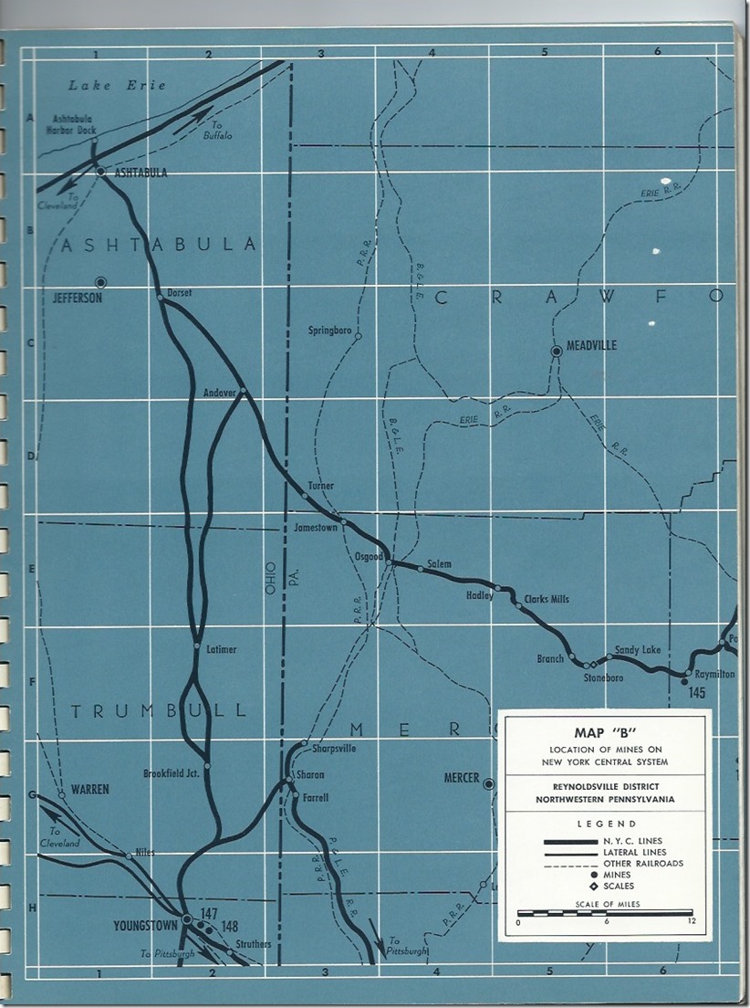 24. The JF&C Branch still goes to Rose, but the LEF&C coal hauling shortline cab be reached off the Pennsy “Low Grade” from Brookville. PC JF&C Br 1974.