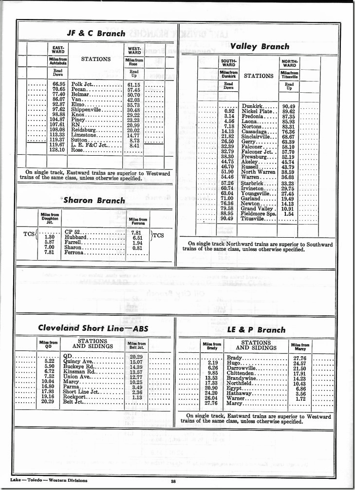 19. NYC Lake Division branches from the 1966 employee timetable. NYC has given the initials of “JF&C” Branch for the former Jamestown, Franklin & Clearfield Railroad. Click here for a larger image.