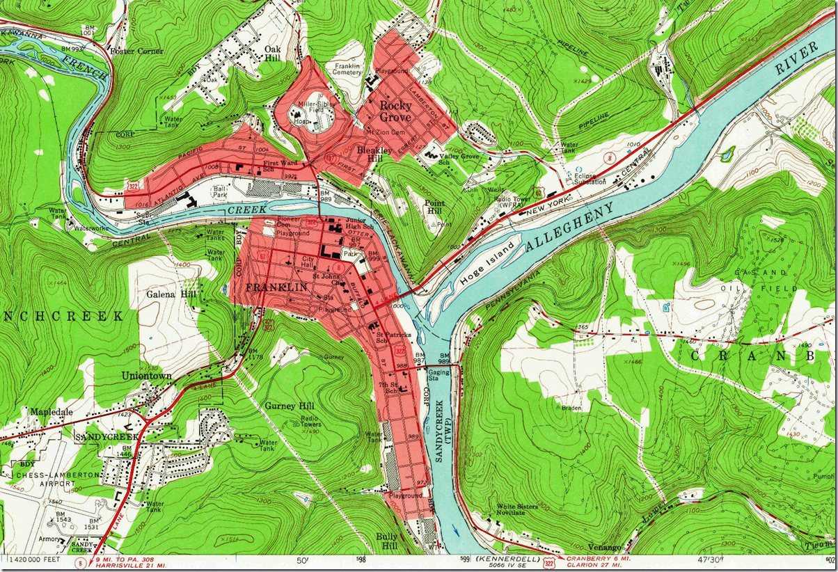 32. Franklin PA, 1:24,000 quad, 1963, USGS. Click here for a larger image.