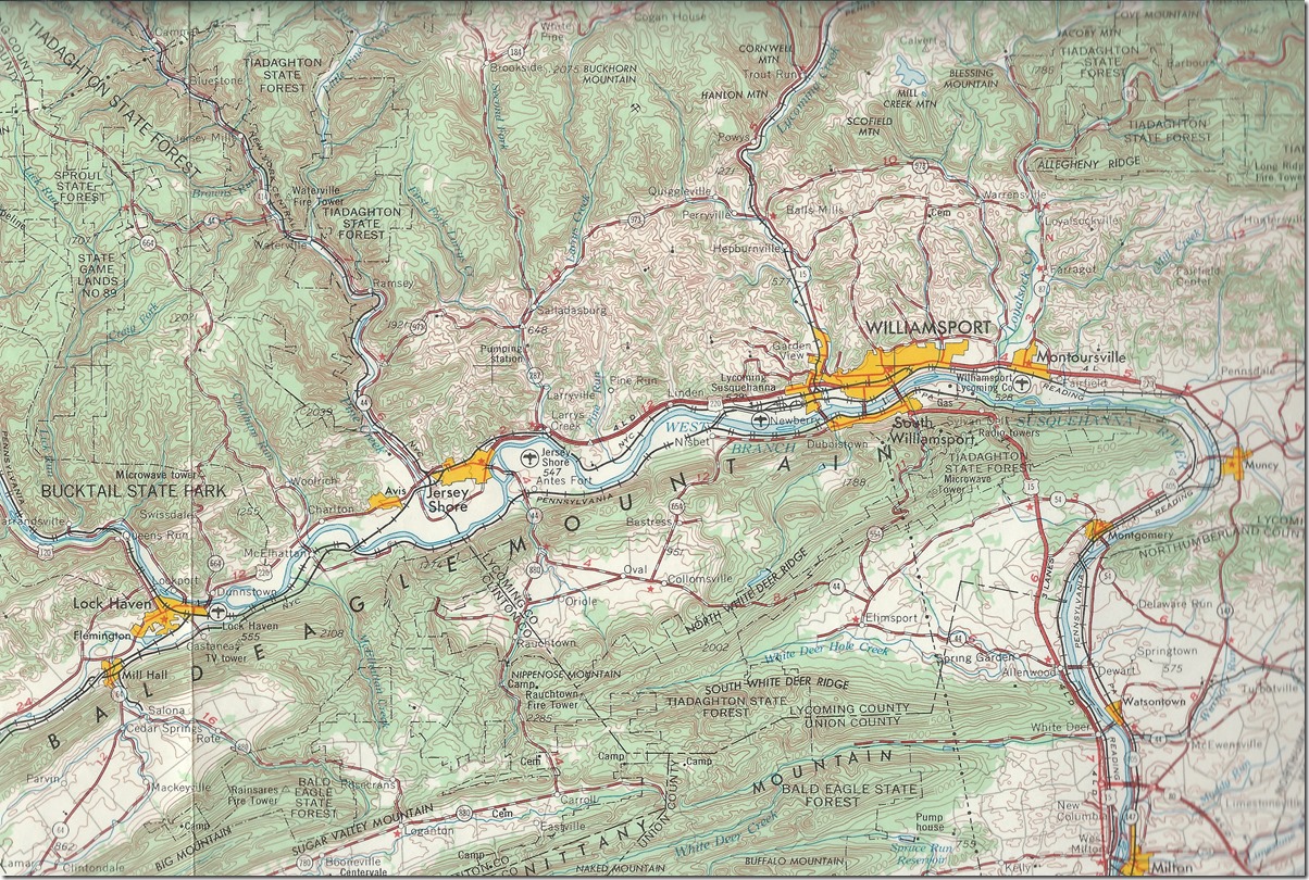 19. USGS Williamsport 1:250,000 Quad 1962. Jersey Shore Milton. Click here for a larger image.