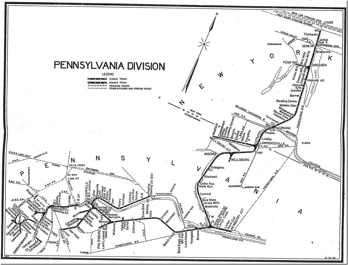 24. NYC operated over the PRR from Rich to Keating to reach the better of their two lines to Clearfield which was a river grade. This would be coal moving to the Reading. NYC PA Div profile.